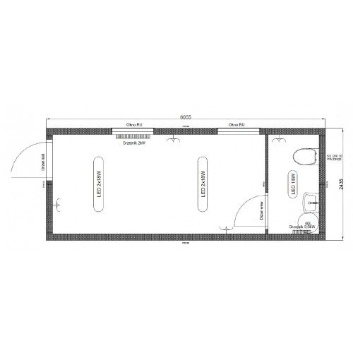 - Instalacja elektryczna: 2 gniazdka podwójne, 2 lampy LED 2x18W